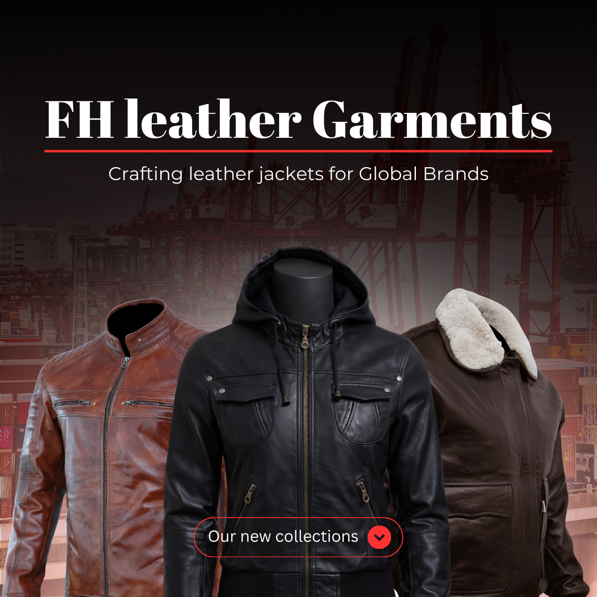 FH Leather Garments is a Pakistan-based leather jacket manufacturing company established in 2017, specializing in premium-quality genuine leather garments. We collaborate with international brands, wholesalers, and private label businesses to deliver consistent craftsmanship, competitive pricing, and reliable production timelines. With our own production facility and skilled artisans, we ensure that every jacket meets international quality standards. With our own production facility and skilled craftsmen, we ensure every jacket meets international quality standards.